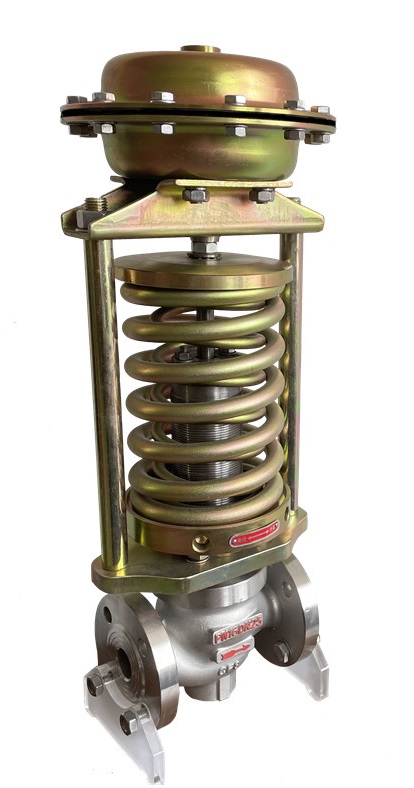 6、膜片式執(zhí)行機構采用橡膠(jiāo)膜片作為壓力檢測元件,剛度小,靈敏度(dù)高,反應迅速,調節精度高,適用於控製壓力≤0.6MPa;