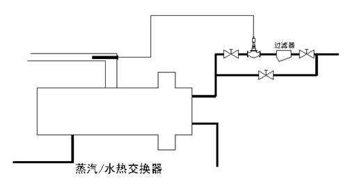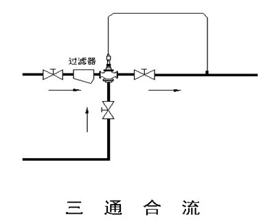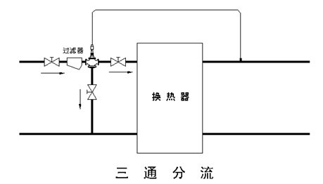 2.       閥(fá)體安裝前應清洗管道,不得有雜物。閥體安裝時必須垂直於地麵,閥體進口方向與熱媒介質流動(dòng)方向一(yī)致。本溫度(dù)調節閥前後應安裝截(jié)止閥且調(diào)節閥前應安裝過濾器(qì),以免雜質損傷密封表麵。為方便用戶的使(shǐ)用及調節(jiē)閥的檢修,應設置旁通管路並安裝截止閥,請參看示意圖。