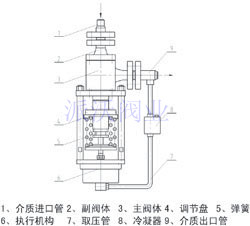 氣(qì)體或蒸汽介質以箭頭方向(若是液體則流動方向相反(fǎn))進入閥體,通過閥座,閥芯多級減壓後經出口流出,減壓後(hòu)的壓力經閥後接管經冷凝 器被引到執行(háng)機構中活塞下麵,壓力對於執行機構的(de)作用所產生的向上的推力由相(xiàng)反方向的彈簧(huáng)的彈力加以平衡。當被減壓的介質壓力(lì)發生變化時,就破壞了這種平衡(héng)關係,閥芯移動(dòng)直至向上的推力和彈簧力恢複平衡為止。它總能使閥後壓力向用戶設定值靠攏。