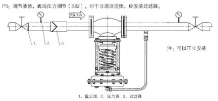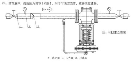3、自力式壓力調節閥安裝於液體管道(減壓型):