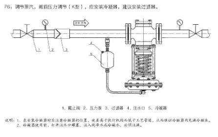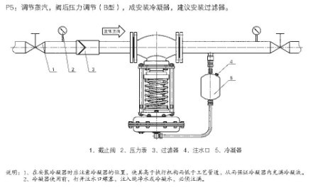 5、自(zì)力式壓力調節閥安裝於蒸汽管道(減壓型):