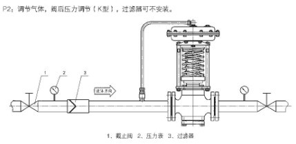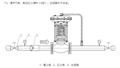 2:自力式壓力調節(jiē)閥安裝於氣體管道(泄壓型):