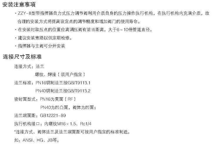 ZZY-II型自力式帶指揮器型壓力調節閥安裝注意事項:
