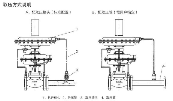 ZZY-II型自力式帶指揮器(qì)型壓力調節閥取壓方式說明:
