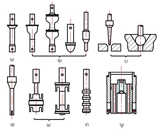 a)平板型閥芯、b)柱塞型閥芯 、c)球型、針型閥芯 、 d)圓柱體上(shàng)銑出小槽閥芯  、e)窗口型閥(fá)芯、f)多級閥芯、g)套筒閥閥(fá)芯