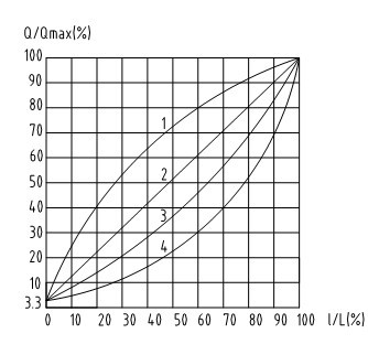 拋物線流量特性是指閥(fá)杆單位位移的變化所引起的相對流量變(biàn)化與此點的相對流量值的平方根成正比關係,它介於直線特性與等百分比特性曲(qǔ)線之(zhī)間,相對(duì)來(lái)說此特(tè)性應用較(jiào)少。