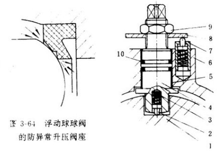 對於固定球球(qiú)閥(fá);可采用圖3-22和圖3-24所(suǒ)示彈性閥座。當閥(fá)體體腔內壓力異(yì)常升(shēng)高時,將反向推動閥座後退使之與球體(tǐ)脫離接(jiē)觸。流體則沿著閥座與球體之間的間隙流出,消除過壓現象。